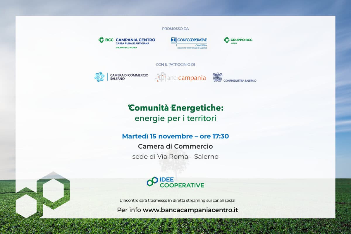 Promosso da Banca Campania Centro, Confcooperative Campania comitato territoriale di Salerno e Gruppo BCC Iccrea, e con il patrocinio di Camera di Commercio di Salerno, Anci Campania e Confindustria Salerno, l’incontro si propone di sensibilizzare gli stakeholder (enti, associazioni, imprese, amministrazioni comunali) e i cittadini del territorio sul tema delle comunità energetiche e sulle opportunità a vantaggio delle comunità attraverso la “condivisione” di energia da fonti rinnovabili.